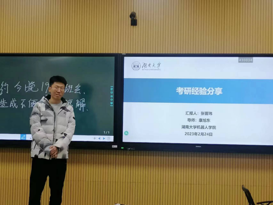 最后,由张晋玮学长和张毅学长分别上台来分享了自己的考研经验。学长们就考研内容,考研时间,考研方式上做了详细的介绍,就自己和身边同学的经验向大家分享了许多心得体会,提醒了同学们容易忘记和误会的一些考研小重点,并耐心解答了同学们的一些疑问。