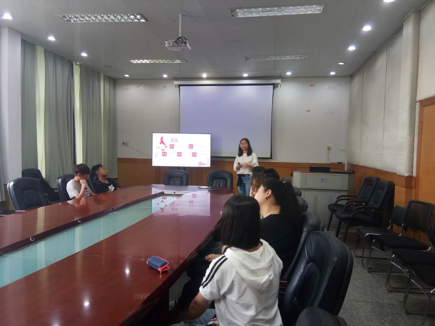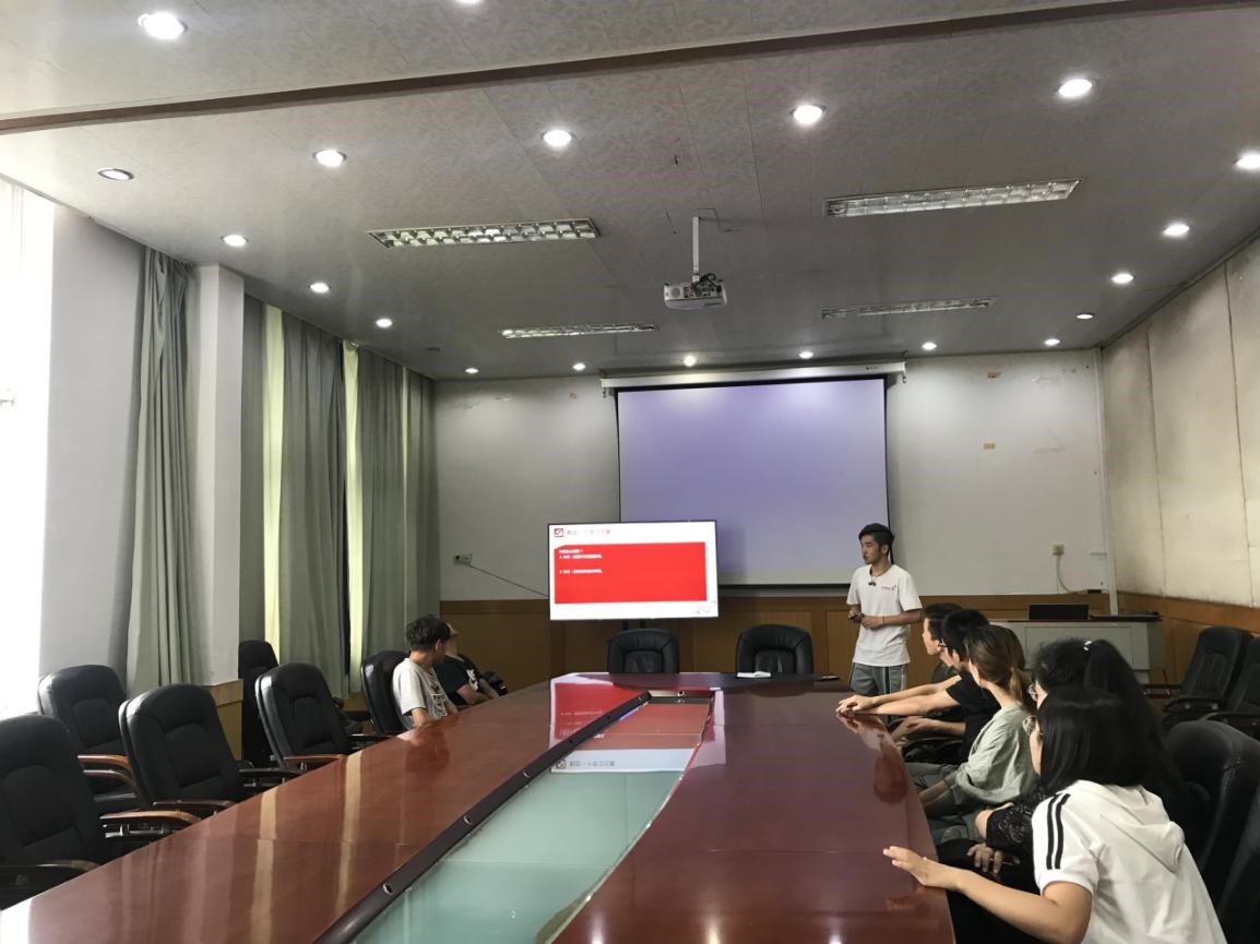 会议刚开始,金老师和同学们围绕专业、家乡、兴趣爱好和特长等方面进行了自我介绍。在简单的自我介绍环节后,金老师以自己的亲身经历来讲解了社会实践活动的目的与意义:提高同学们的组织能力、团队合作能力以及发现和处理问题的能力,培养同学们的社会使命感。