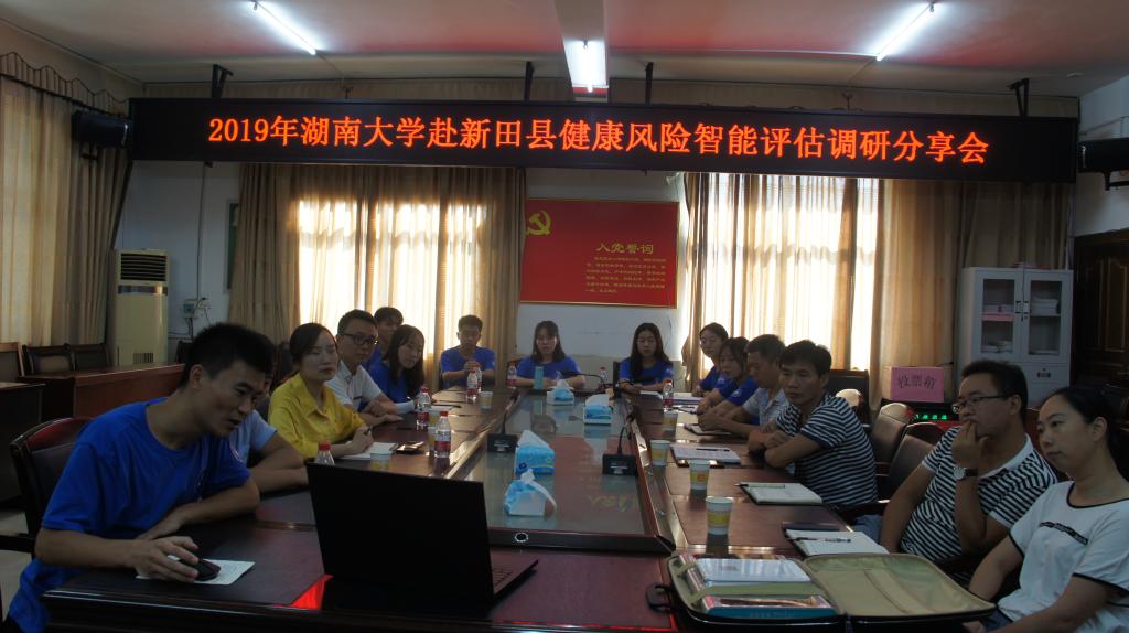 赴新田县健康风险智能评估博士服务团依托学校优势学科力量,汇聚各学科专业人才,结合学校近年来赴新田县扶贫工作的既往经验,积极响应《湖南省健康扶贫工程实施方案》文件要求和精准扶贫工作的号召,探索并实施“智库服务模式”,以座谈会、调研、走访等形式了解当地工作状况,共同发挥精准扶贫中的战斗堡垒作用。