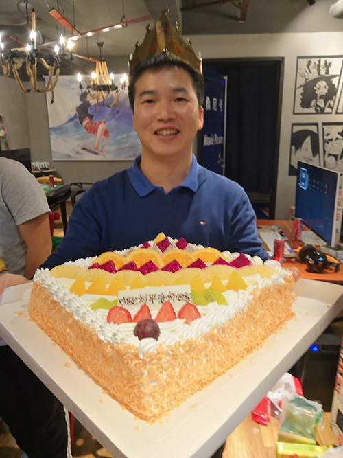 待到饭菜和酒都布置好了,老师和同学都坐在了大餐桌旁边。这个时候,整个大厅的灯突然熄灭,一片漆黑。只见在大厅入口处的微弱烛光里,班长肖伟双手端着一个大大的蛋糕,缓缓走向刘平老师。原来这是班级给老师的一个小惊喜,甜美可口的大蛋糕上,除了有令人垂涎的水果和奶油,还有一行温馨的话语——“欢迎刘平老师回家”,蜡烛也别出心裁地摆成“7”的形状,象征着电自七班和刘平老师永不分离。