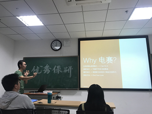 作为参加过两届全国电子设计大赛并取得优异成绩的‘’电赛老腊肉”,来自自动化1504班的钱深瀚首先为大家介绍了“电赛是什么”,并从“为什么要参加电赛”以及“如何开启自己的电赛之路”两方面带领大家深入了解了这个与电气院学子紧密相关的竞赛。通过简单的互动环节——人工控制小球的滚动与计算机控制的差别,他为大家呈现了电赛的魅力所在,并指出兴趣才是引领一个竞赛人实现目标的最强动力。结合自己的经验,钱深瀚表示,做竞赛是一个积淀的过程,而在这个积淀的过程中,通过深度参与,一个人的全局思维以及底层能力都会得到锻炼和提升,这对于今后的发展是至关重要的。同时,他也为大家指明了一条竞赛开启之路——从51单片机学起,逐步深入,以项目为导向进行学习,最终获得参赛实战的能力。分享的最后,学长鼓励大家从现在做起,多去锻炼实践,因为“保研的机会是属于每个人的”。