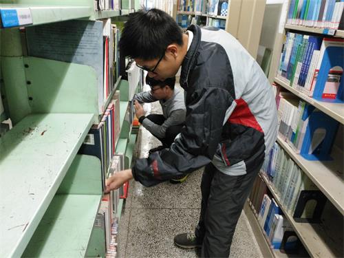 而前往七楼的同学的任务则完全不同,他们需要做的是将乱序的书籍重新整理,不需要体力,但是需要绝对的细心和耐心。时间飞快,过了一个小时,志愿者们仍在专心整理顺序,直到老师前来表达感谢并表示已经结束之后才将手里的工作停了下来。