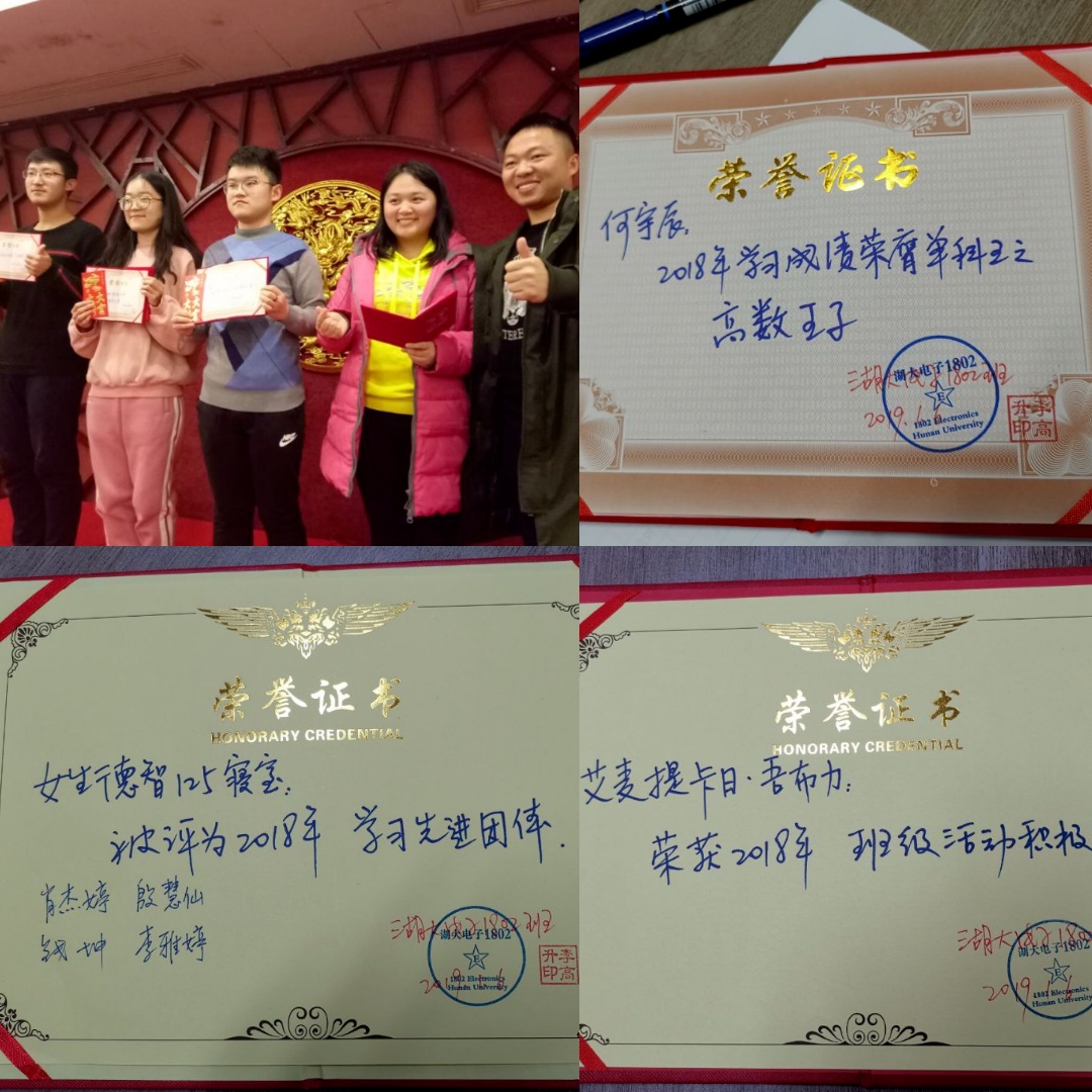 电子信息工程1802班在长沙通程麓山大酒店组织召开了年终总结大会。此次活动由班主任李高升教授策划和指导,班委、团委具体组织实施,学生助理朱子荣学长参加,院团委书记彭清萍老师和2018级辅导员彭琪淋老师应邀到会并发表了热情洋溢的讲话。