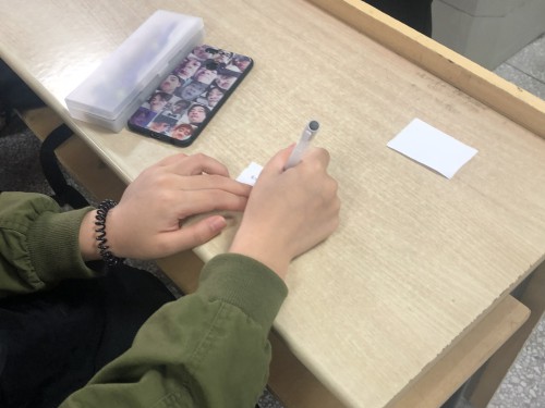 班会之后,副班长潘越下发了小纸条,让班级同学在纸条上写下自己的期末目标,写完目标后,大家相互讨论、分享自己的目标,讨论得热火朝天。俗话说“目标才是前进的动力”,借此机会,同学们可以立下自己的目标并向此前进。