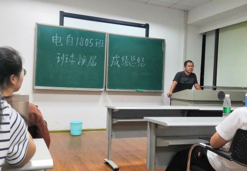 电自1805班在班主任孙秋芹的组织下,于综合楼举行了大二学年的第一次班会。此次班会主要分为班委换届和成绩分析两个部分。
