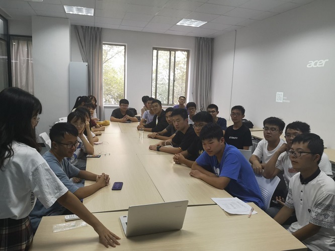 首先,吴婧为同学们概括了70年风雨兼程的新中国发生的翻天覆地的变化,通过一段视频,带领大家一起追忆革命历史,并介绍了中华民族自强不息,砥砺前行,将曾经满目疮痍、百废待兴的旧中国建成如今团结统一、繁荣富强的社会主义新中国的光辉历程。过程中,班长刘楠号召大家在共庆国庆之际写下了自己对未来的规划以及困惑,并鼓励每一个人在大二这个特别的时间点为自己的未来绘制蓝图,为更好的新中国继续努力。