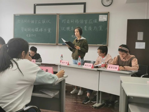 10月13日下午3时,一场精彩的辩论赛在电自1907班和电自1905班之间展开。经过两场辩论赛的磨砺,他们如雏鹰展翅,宝剑出匣,乍显雄姿,初露锋芒。在主席宣布比赛开始后,正方一辩开始陈述观点,陈词抑扬顿挫,逻辑严密;反方三辩则细抓漏洞,有力反诘。你来我往之间,尽显语言的智慧,逻辑碰撞的火花伴着思维的紧张交锋。双方不分伯仲,各有千秋。