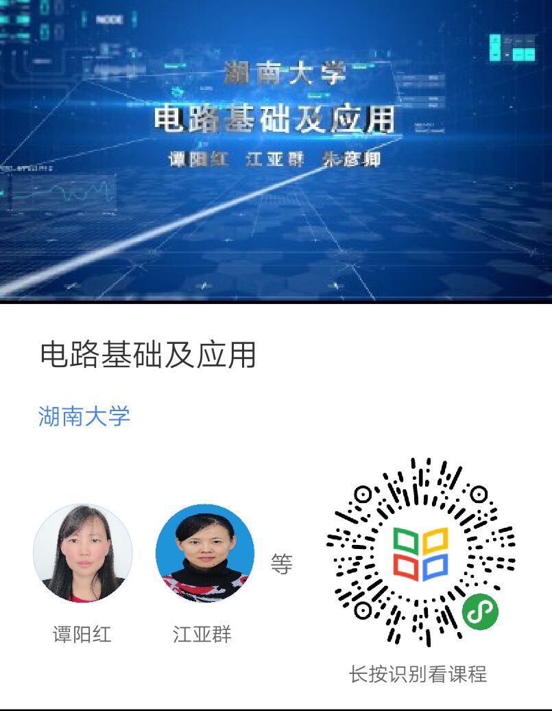 用微信识别图中二维码或者在“学堂在线”网站查找“电路基础及应用”课程,注册后直接进入课堂听课,在讨论区有老师免费答疑。