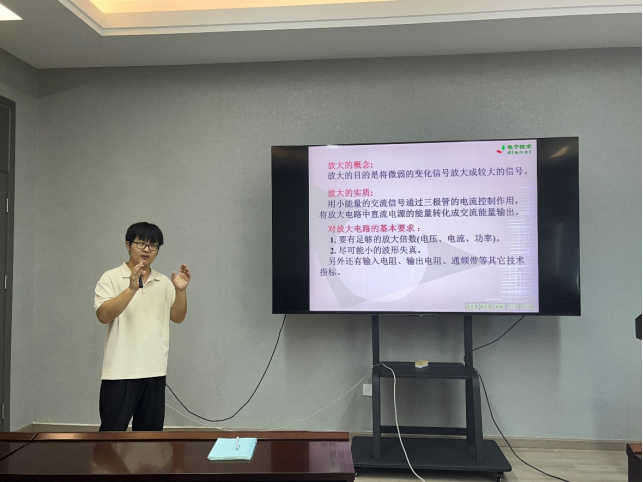 为帮助新进教师提高课堂教学水平、早日站稳讲台,在学院的指导部署下,电工电子学课程组于2023年9月7日上午在院楼210会议室组织开展了新进教师试讲指导工作研讨会。电工电子学课程负责人冯垚径老师主持会议,两名新进教师到场试讲,校督导谭阳红教授、原课程负责人江亚群及课程组多名资深教师组成“听课小组”出席会议并参与指导。