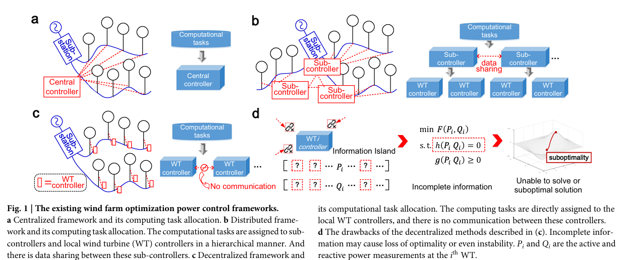 风力发电作为当今世界极具前景的新能源,已成为我国主力能源之一。相比于传统能源,风力发电的随机性更强、时空分布更广、多机耦合作用更显著,是实现减碳战略的重要技术路径。而大规模风电机群协同优化控制是能源领域长期的热点和难点问题。当前,传统方法面临通信时间长、维数灾、响应迟缓等诸多技术挑战,难以实现工程应用。