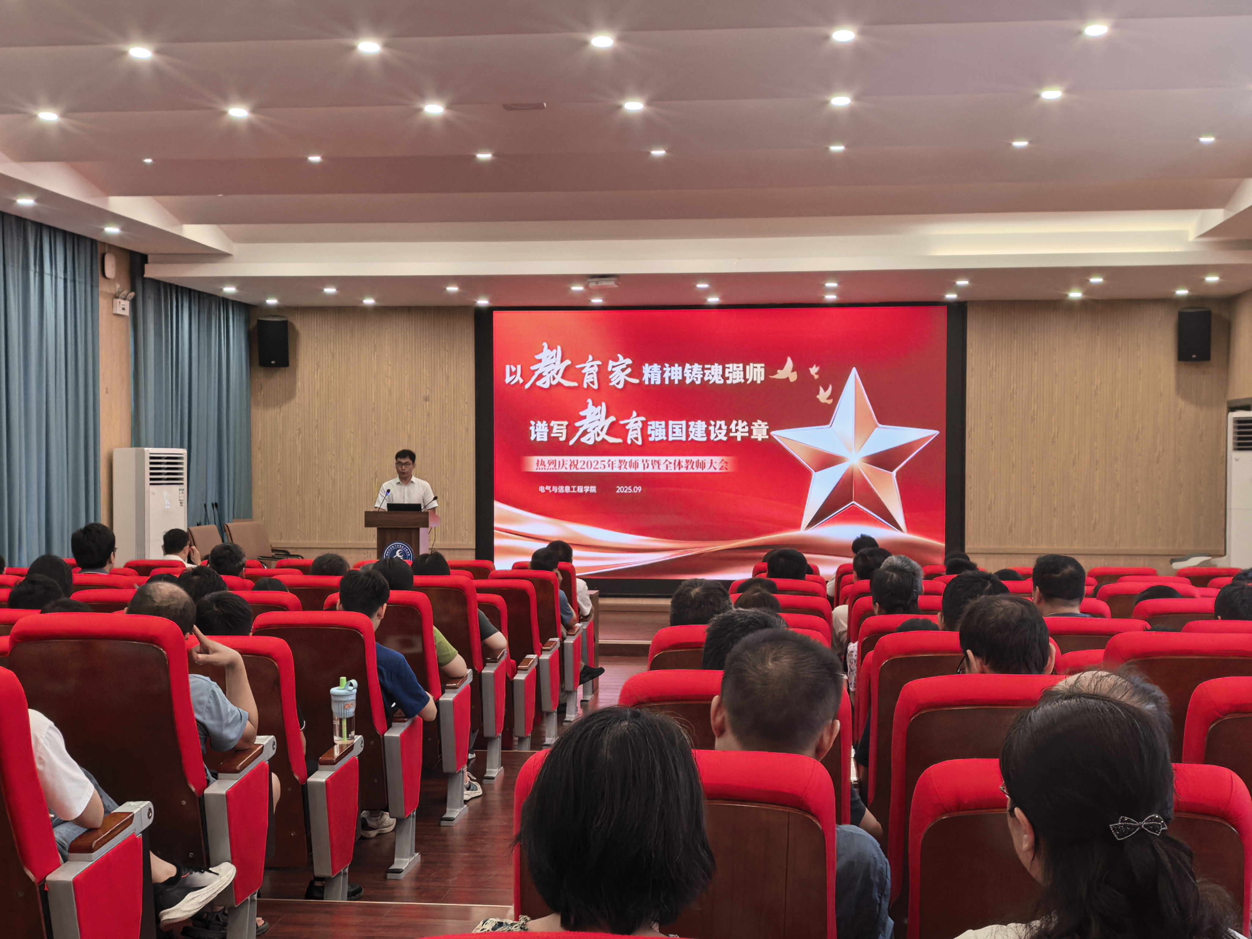 以“以教育家精神铸魂强师,谱写教育强国建设华章”为主题,召开2025年秋季新学期全体教职工大会。会议在庄严的国歌声中拉开帷幕,主持人汪洪亮副书记首先带领全体教职工回顾了中国人民抗日战争暨世界反法西斯战争胜利80周年的伟大历史意义,激励大家传承爱国精神,牢记为党育人、为国育才的初心使命,以更加饱满的热情投身新时代教育工作。