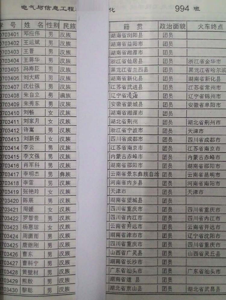 本科生校友名单 (1921—1925 湖南公立 工业专门学校)