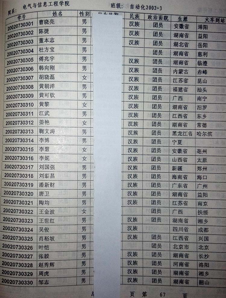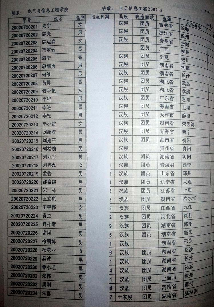 本科生校友名单 (1921—1925 湖南公立 工业专门学校)