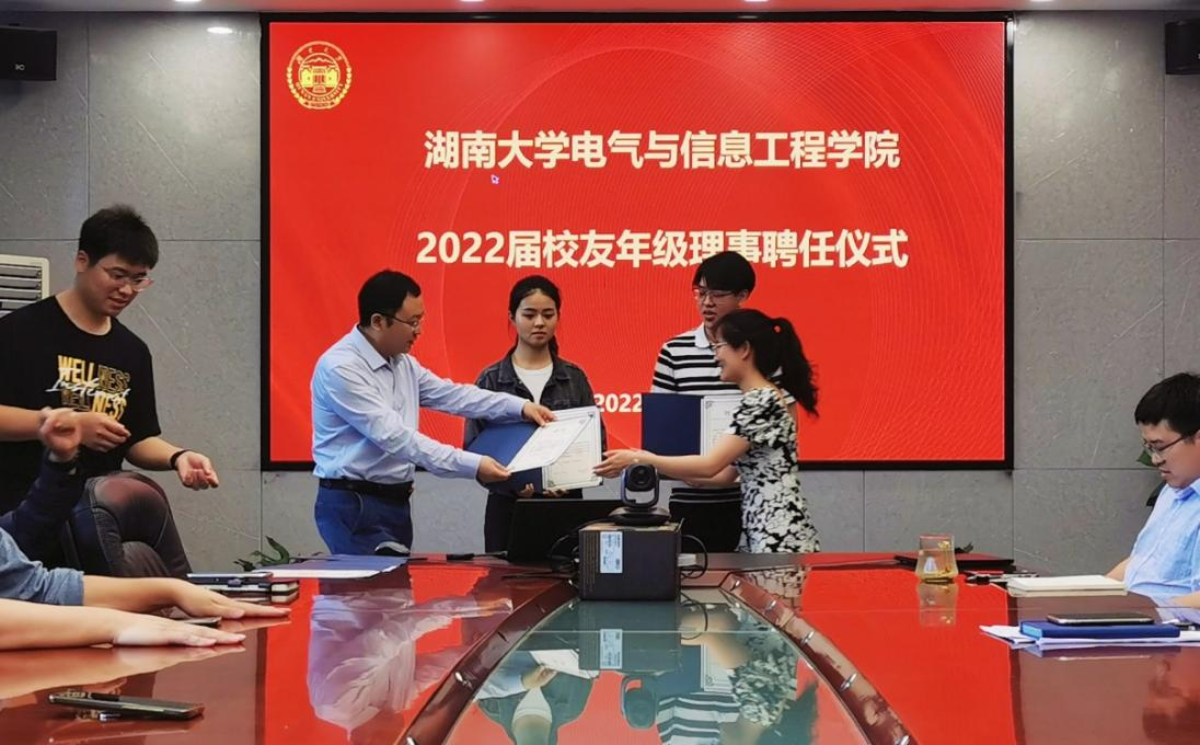 2022届校友年级理事聘任仪式在学院219会议室举行。校友总会秘书长李劲松、 台av