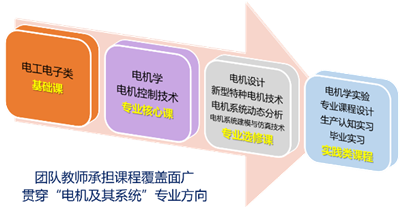 3、近年来,团队基于“双一流”建设背景下的学科研究新成果,以培养具有创新能力的应用、复合型人才为目标,积极开展电机及其系统系列课程群的建设探索与实践:
